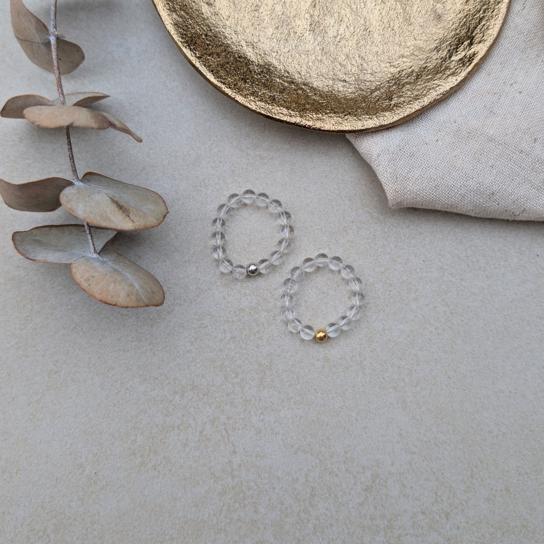 – Einen handgefertigten SoulRing aus echten Bergkristall-Steinperlen
