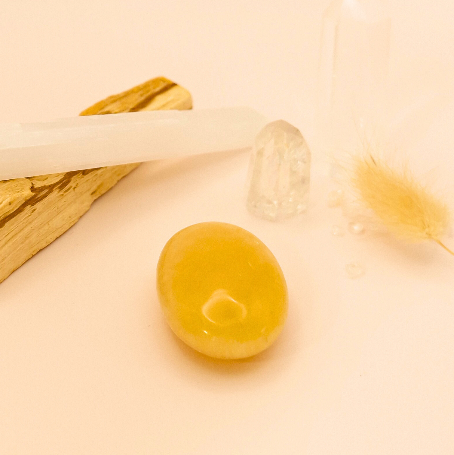 Der Orange Calcit bringt Freude und Vitalität, stärkt deine Kreativität und hilft dir, emotionale Blockaden zu lösen, während er dein Herz mit positiver Energie füllt.