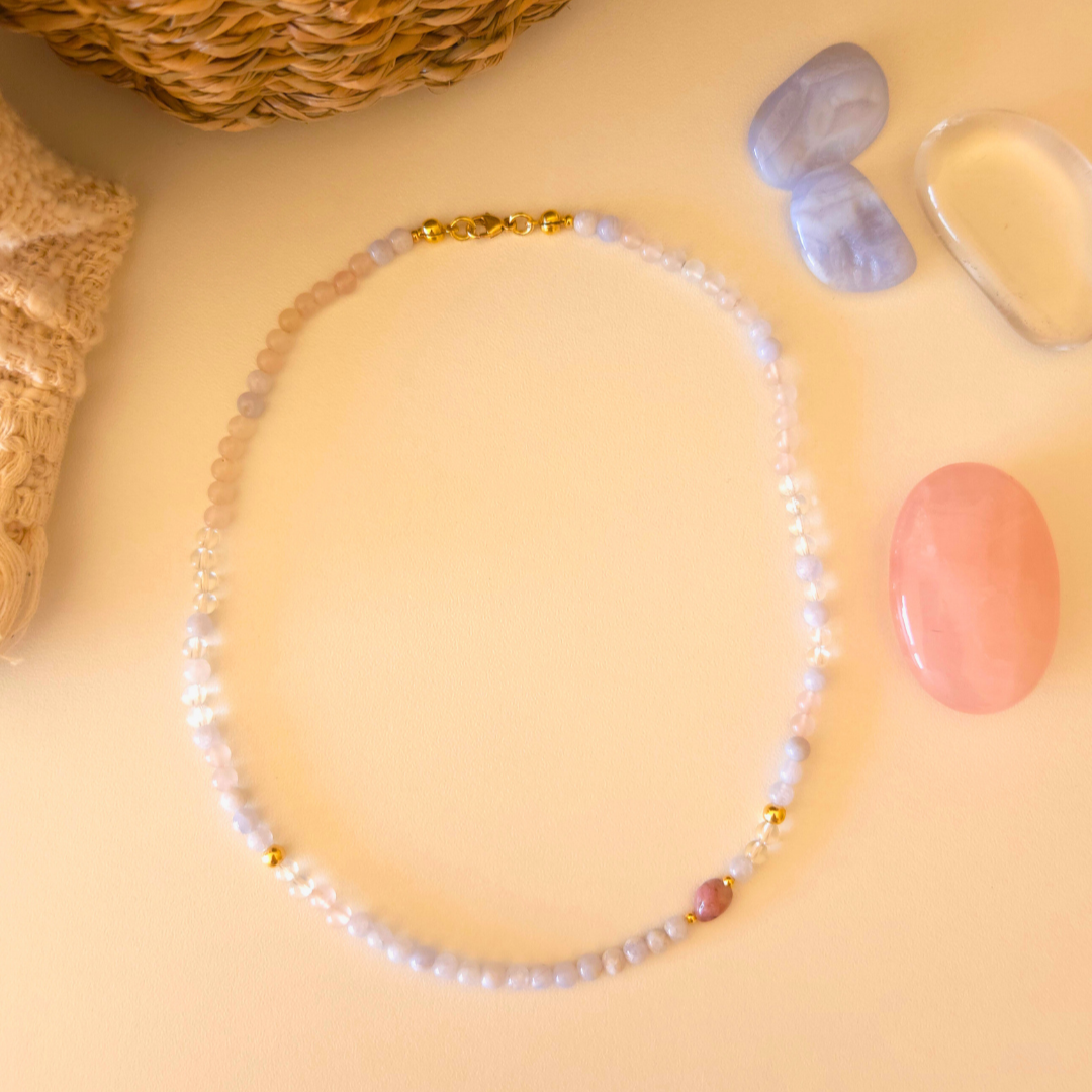 • Eine handgefertigte Kette aus echten Heilsteinen (4 mm Kugeln)