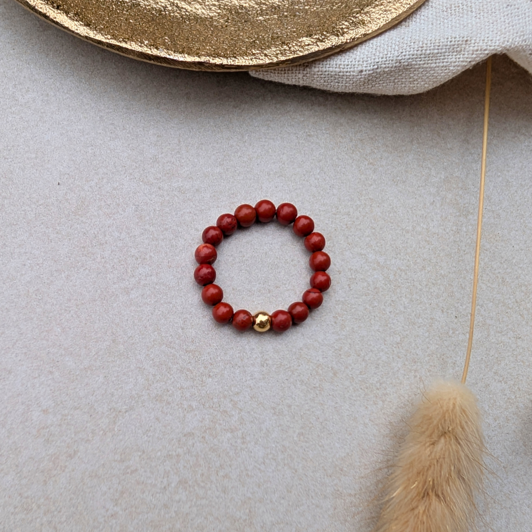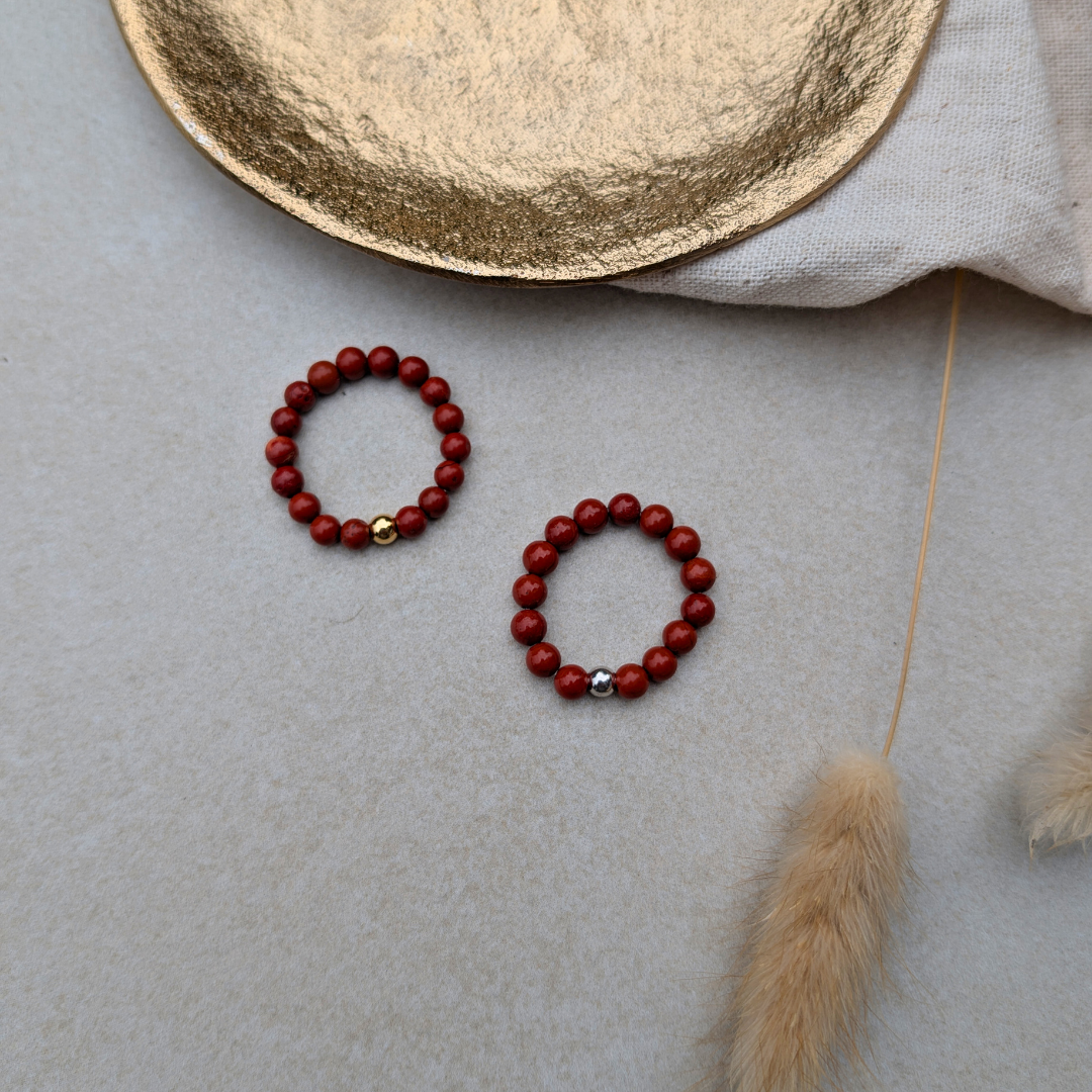 – Einen handgefertigten SoulRing aus echten Jaspis-Steinperlen
