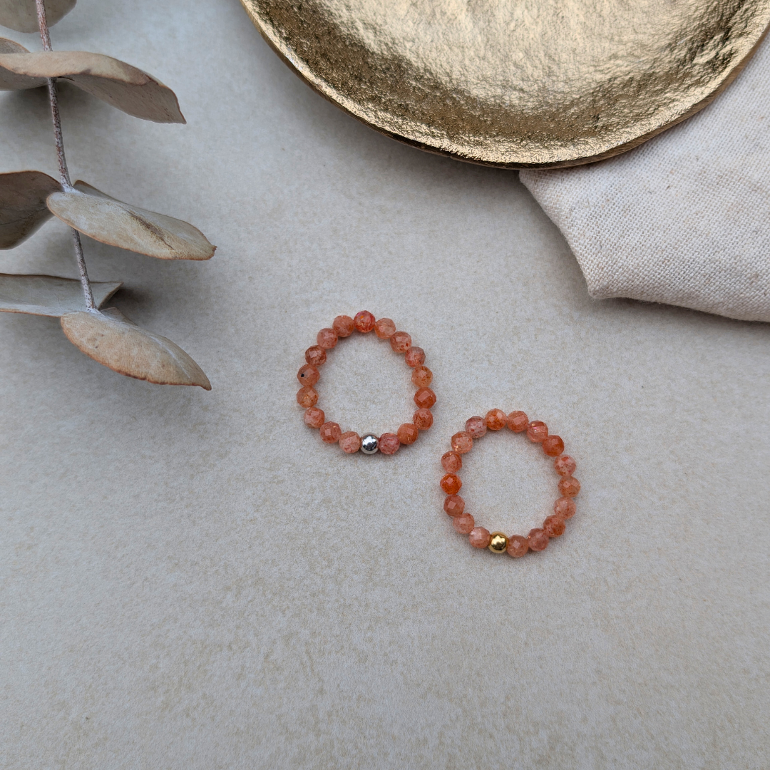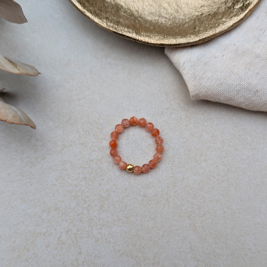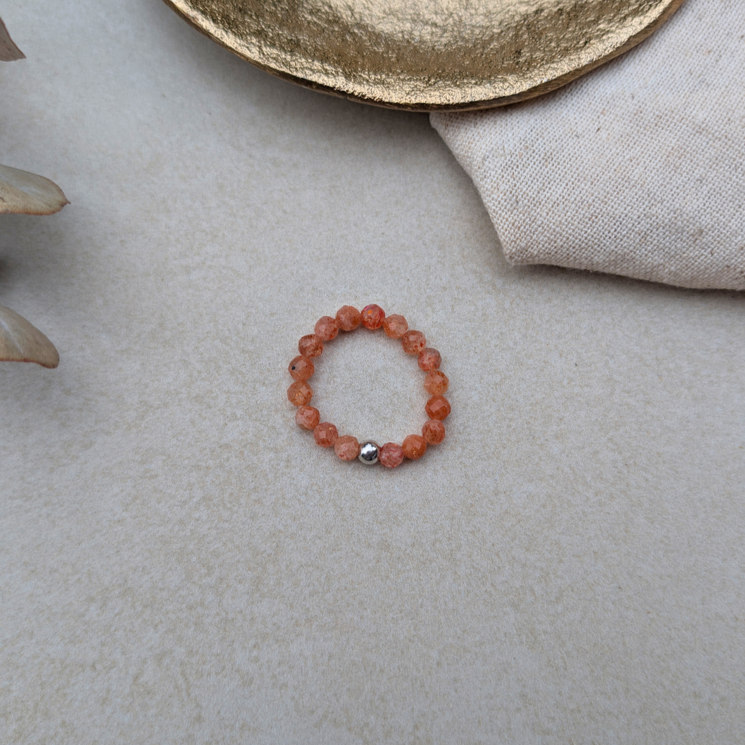 – Einen handgefertigten SoulRing aus facettierten Sonnenstein-Perlen
